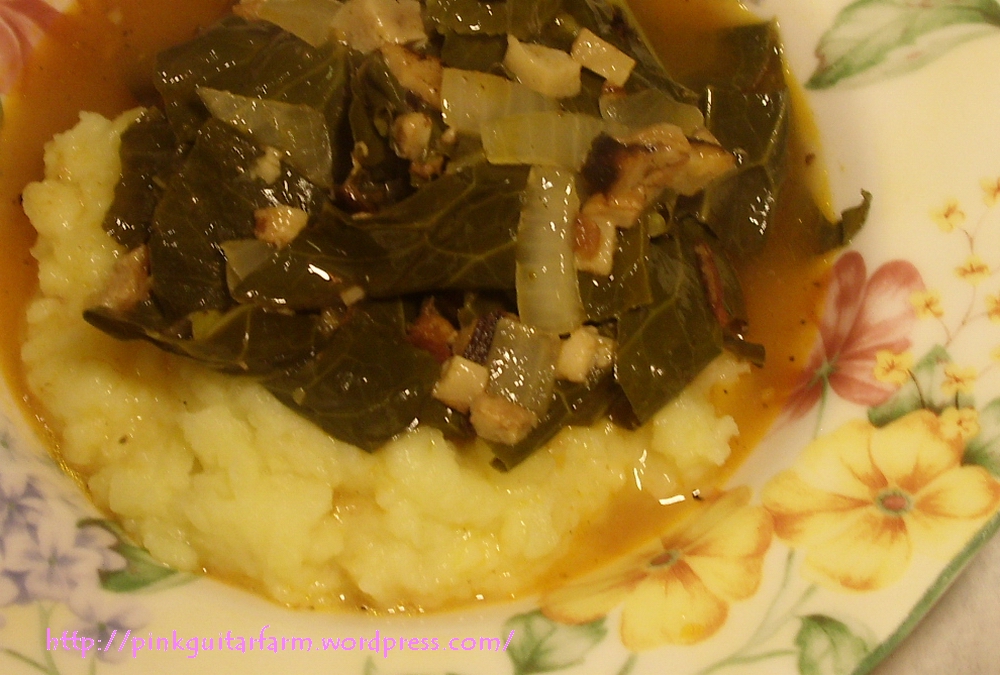 The idea behind using local humanely raised meat is to use more parts, sparingly. Any left over potlikker? Add it to a cooked pot of black-eyed peas or navy beans! This dish was stretched over several meals and we enjoyed every bit of it.
